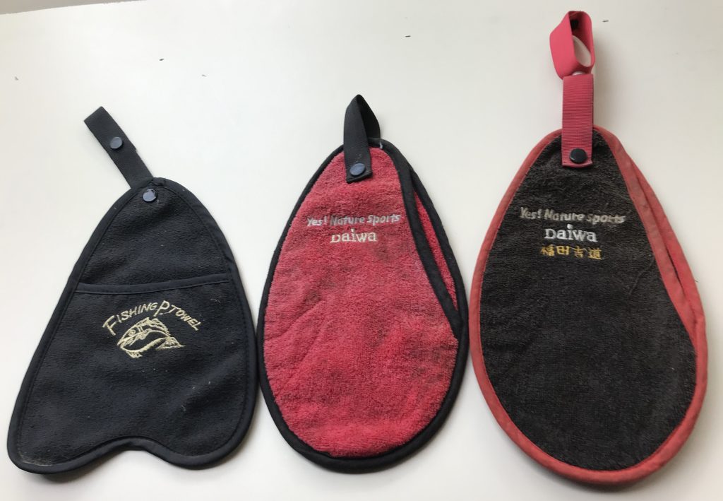 「腰に下げて釣りタオルにも使えるし、魚を締めるときにも、手拭きにも使えて重宝しています。」「釣りに行くときの必需品。こんなタオルが欲しかった。」