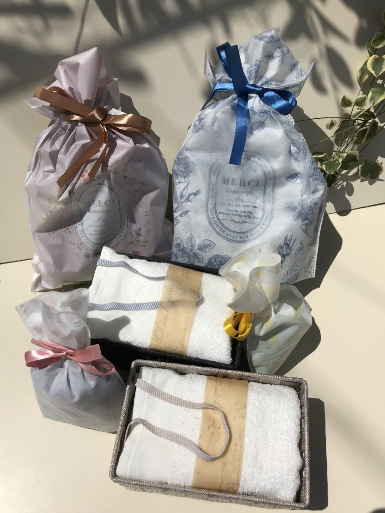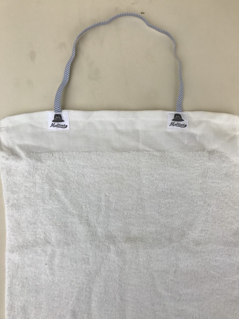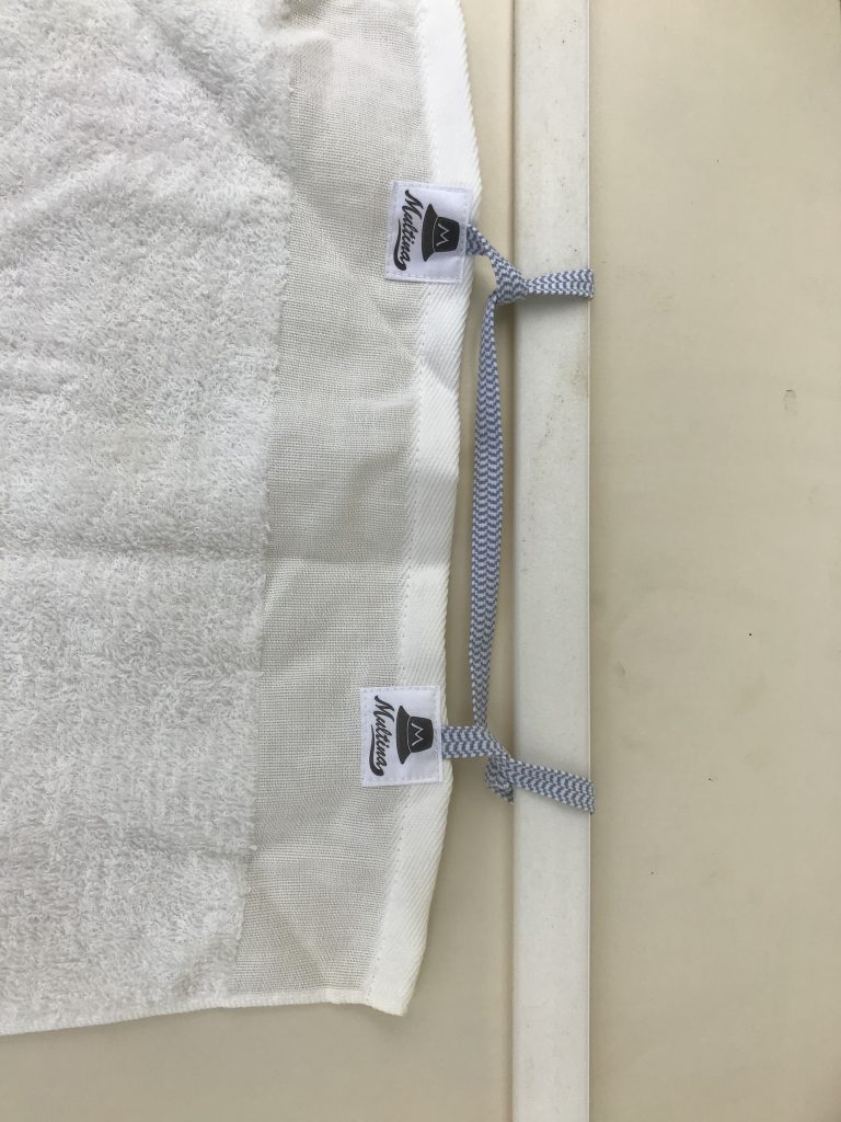 タオル本体片側に組ゴム紐を縫着する事に依って、いろいろな用途が生まれました。