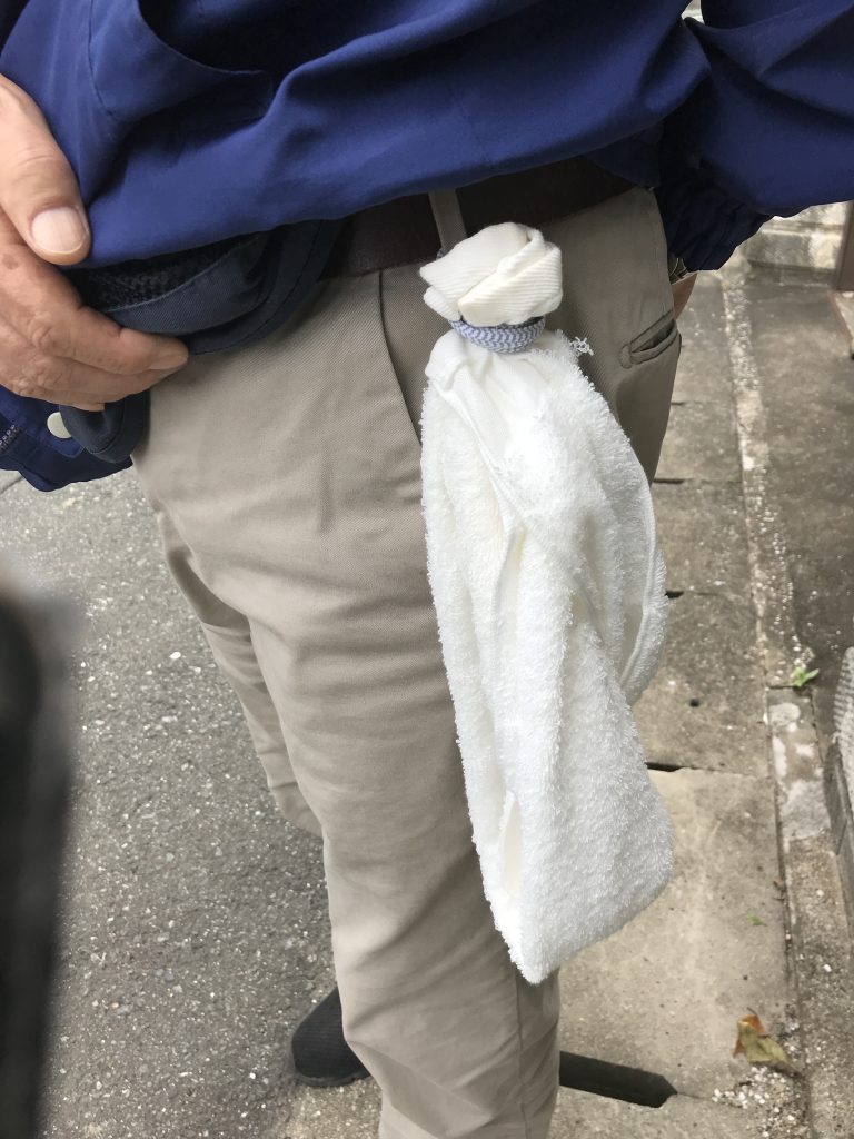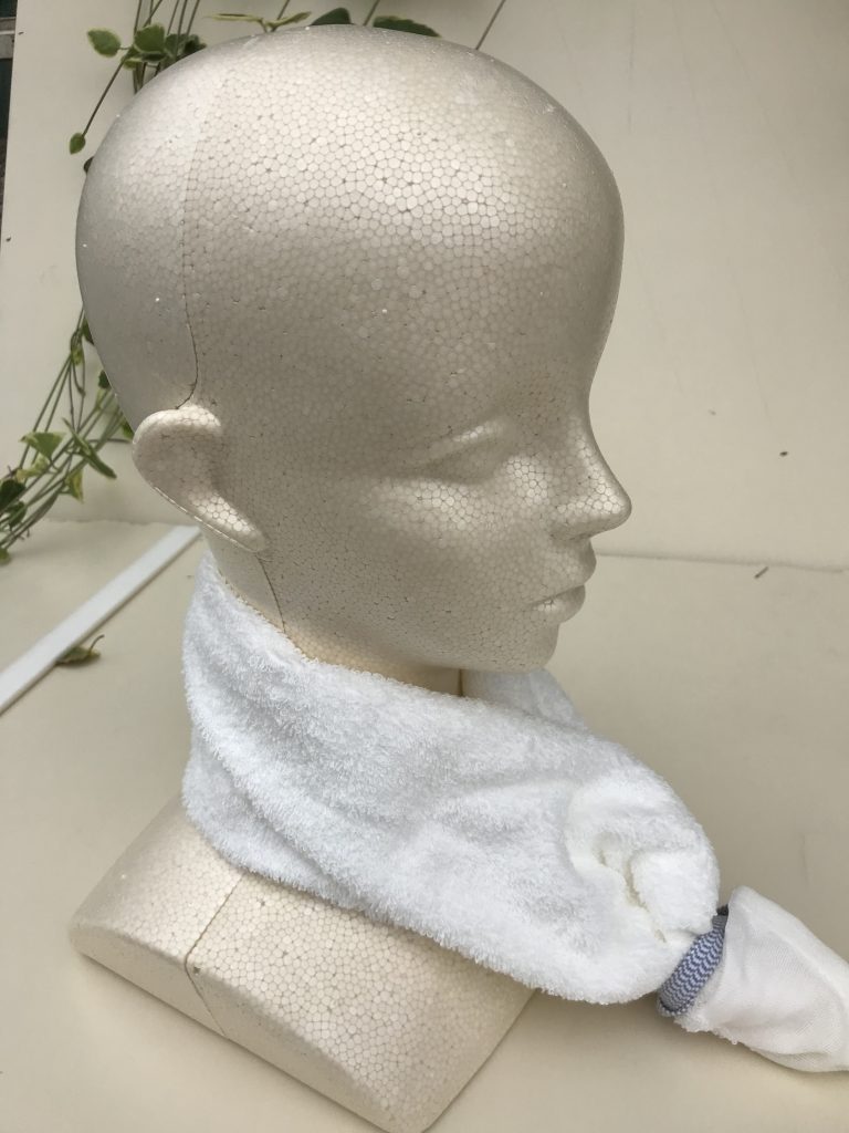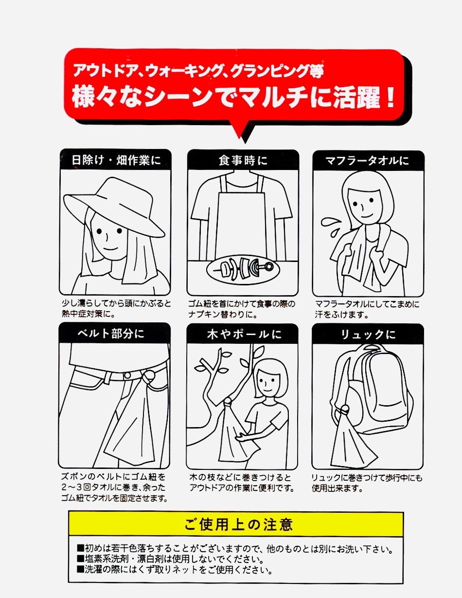 タオルを水で濡らして使用すると、首筋当たりが冷えて、熱中症対策に最適です。
